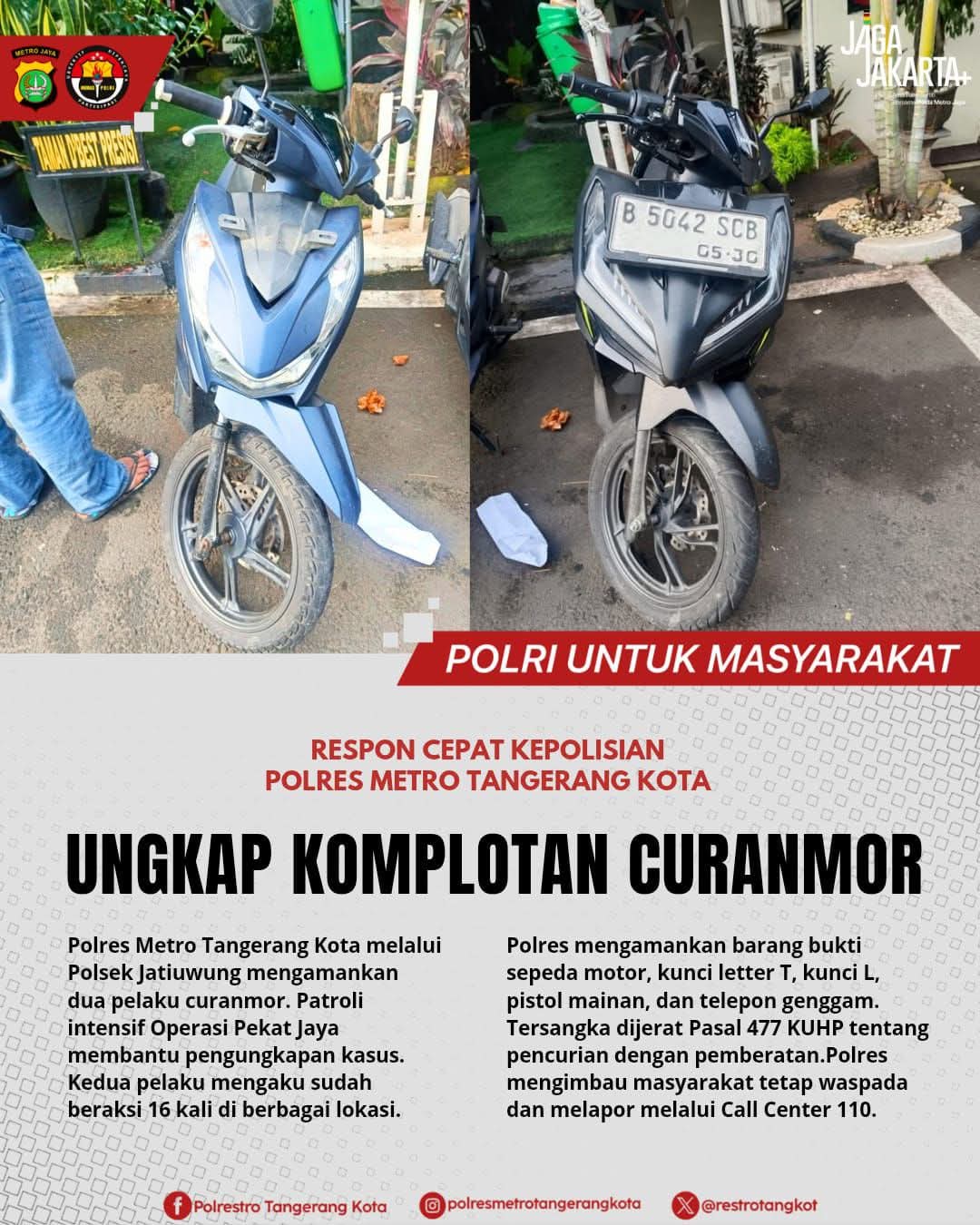 Polres Metro Tangerang Kota memastikan akan terus melakukan pengembangan kasus guna mengungkap kemungkinan keterlibatan pelaku lain serta jaringan curanmor yang lebih luas.