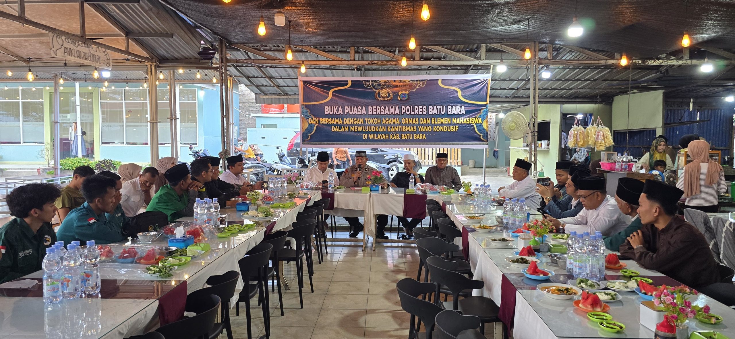 Kapolres Batu Bara yang diwakili Kabag Ops Polres Batu Bara, Kompol Zulham, S.H., M.H., menyampaikan bahwa kegiatan ini bukan sekadar momentum ibadah, tetapi juga menjadi sarana mempererat tali silaturahmi antara Polri, tokoh agama, dan elemen mahasiswa. “Kebersamaan ini mencerminkan sinergitas dan soliditas kita dalam menjaga serta mewujudkan situasi kamtibmas yang aman dan kondusif di Wilayah Kab. Batu Bara,” ujarnya.