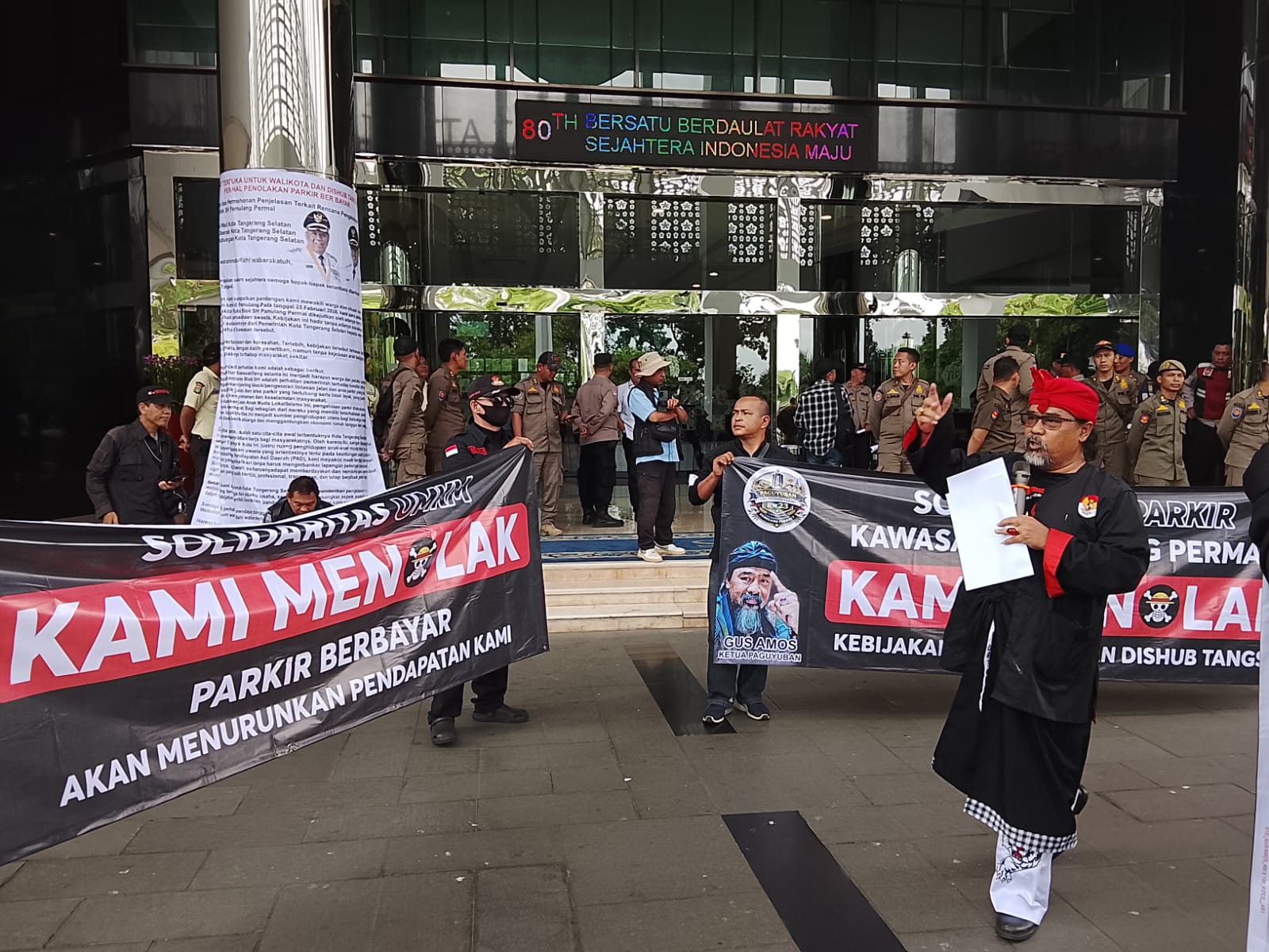 http://Rajawalitimes Nusantara.site Tangerang Selatan —Ketua Paguyuban Warga Pamulang Permai 1, Gus Amos, bersama warga RW 23, pedagang kaki lima, dan pengemudi ojek online menggelar aksi unjuk rasa di Kantor Wali Kota Tangerang Selatan, Senin (2/3/2026). Aksi ini menolak penerapan proyek parkir berbayar di kawasan Ruko dan Perumahan Pamulang Permai 1 yang dinilai cacat hukum dan tidak melibatkan warga dalam proses musyawarah.