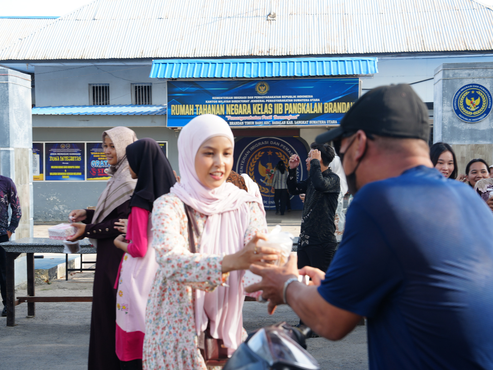 Dipimpin langsung oleh Kepala Rutan, kegiatan tersebut melibatkan pejabat struktural, pegawai, Dharma Wanita, serta peserta magang Rutan Pangkalan Brandan. Bersama-sama mereka menyiapkan dan membagikan takjil berupa bubur kacang hijau dan aneka kue kepada masyarakat setempat serta para pengguna jalan.