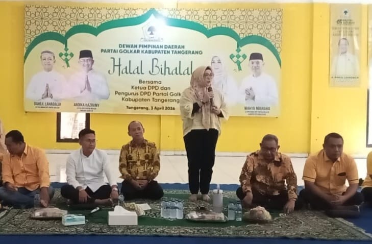 http://Rajawali Times Nusantara.site Kabupaten Tangerang -Halal bihalal merupakan bagian dari program Partai Golkar Kabupaten Tangerang, sekaligus sebagai ajang silaturahmi agar sesama kader Golkar Partai Golkar solid ,”terang Hj. Intan Nurul Nurul Hikmah Selaku Ketua DPD Partai Golkar Kabupaten Tangerang dalam sambutannya di acara Halal Bihalal pada Jum’at (3/4/2026).