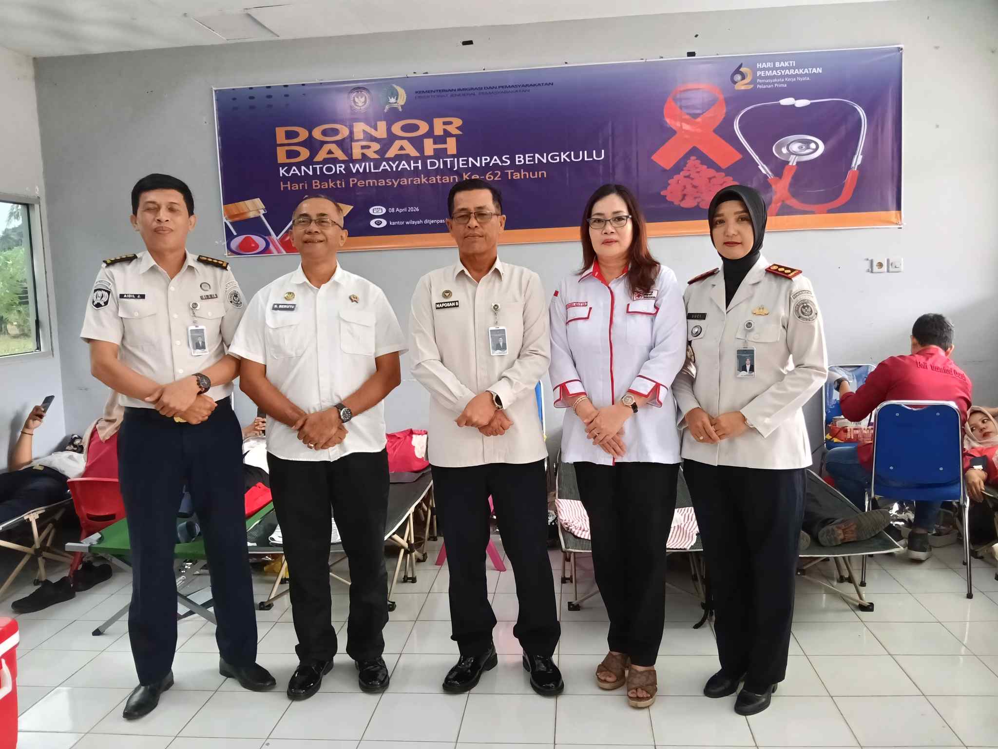 http://Rajawali Times Nusantara.site Bengkulu 08 April 2026 – Kantor Wilayah Direktorat Jenderal Pemasyarakatan (Dirjenpas) Bengkulu menyelenggarakan kegiatan donor darah sebagai bagian dari rangkaian perayaan Hari Bakti Pemasyarakatan ke-62 Tahun. Kegiatan yang berlangsung sekitar pukul 09.30 WIB di kantor wilayah Dirjenpas Bengkulu mengambil tema “Karya Nyata, Pelayanan Prima”, yang mencerminkan komitmen institusi untuk memberikan kontribusi nyata bagi masyarakat serta meningkatkan kualitas pelayanan yang diberikan.